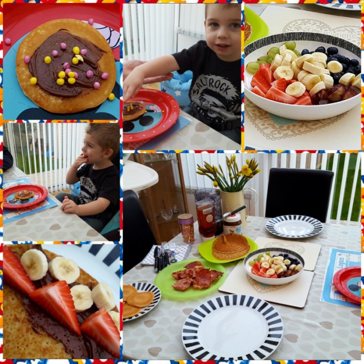 We made pancake day fun by letting our son make his own, he had lots of treats to choose from…not forgetting a variety of fruit to help him towards his 5 a day! Great fun for kids… and …